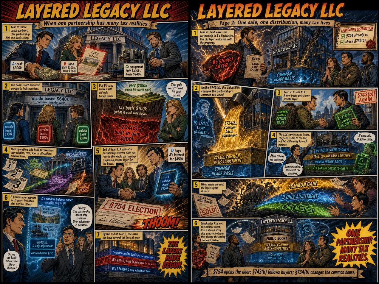 Or what about complex tax law issues? Here's one involving partnership tax that pushes against the limits of comic-book exposition. Sadly, I have no idea whether it is correct! (Perhaps one of my subscribers could let me know!!)