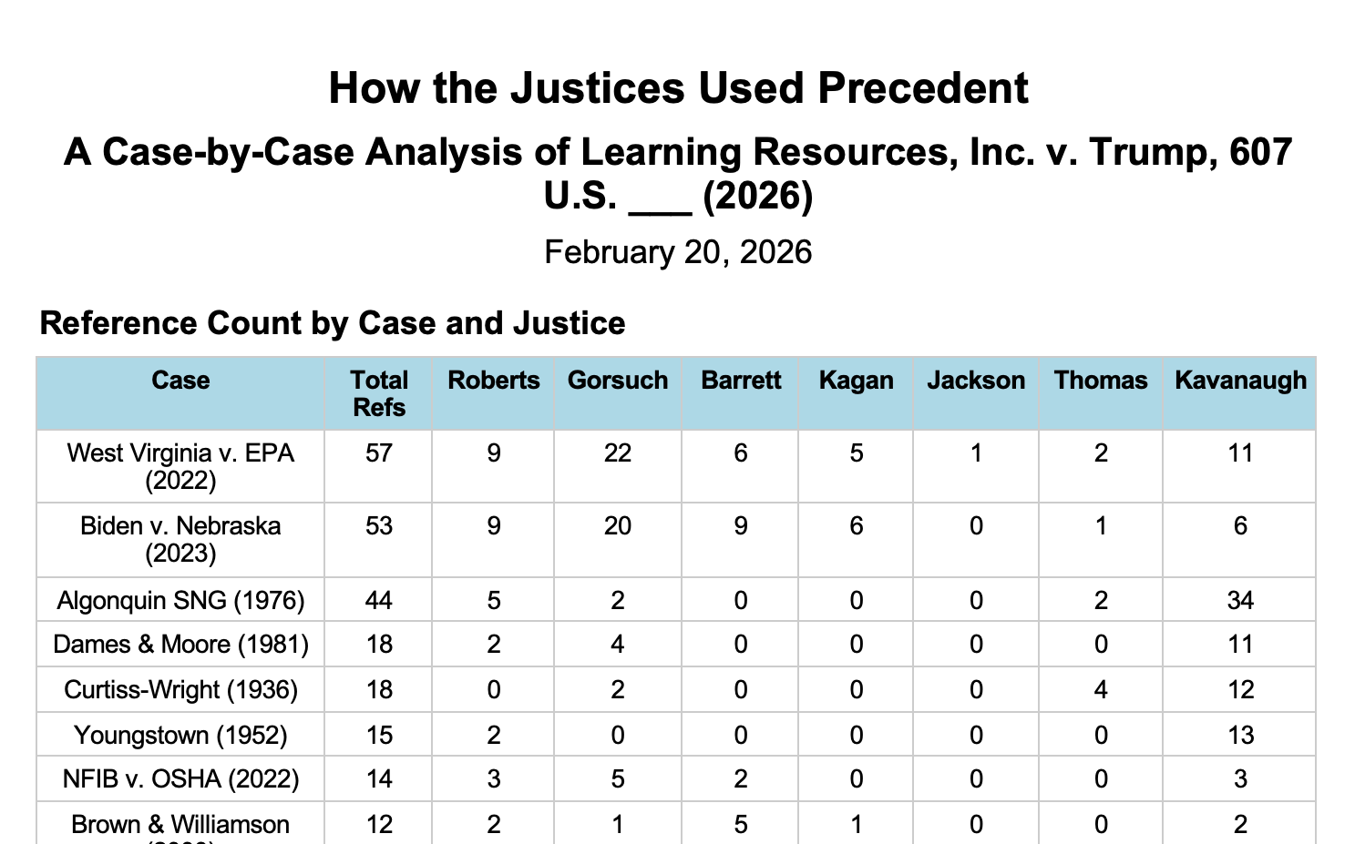 Finally, the Court addressed the Government's reliance on Federal Energy Administration v. Algonquin SNG, Inc.[26], which had held that the power to "adjust the imports" under Section 232 of the Trade Expansion Act included the power to impose license fees. Justice Kavanaugh cited Algonquin thirty-four times — more than any Justice cited any case in the entire opinion.[27] But the majority distinguished Algonquin on two grounds: Section 232 contained sweeping discretion-conferring language ("take such action . . . as he deems necessary") that IEEPA lacks, and Section 232(a) explicitly referenced "duties," providing a statutory context that made it natural to read Section 232(b) as authorizing monetary exactions.[28]