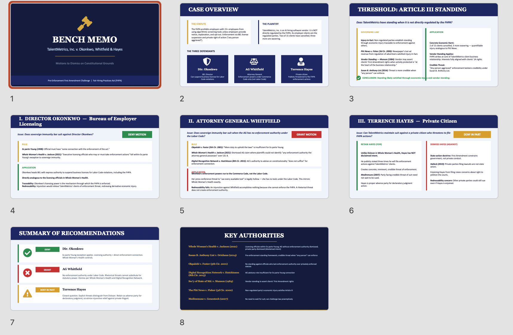 I gave Claude Cowork a standing and 11th amendment problem that AI had drafted collaboratively and said, "Use the midpage mcp connector to develop a good answer to this problem. You should focus on cases like Jackson v. Whole Womens Health but also cases on standing generally." ... "Turn your answer into a 7-8 slide PowerPoint".