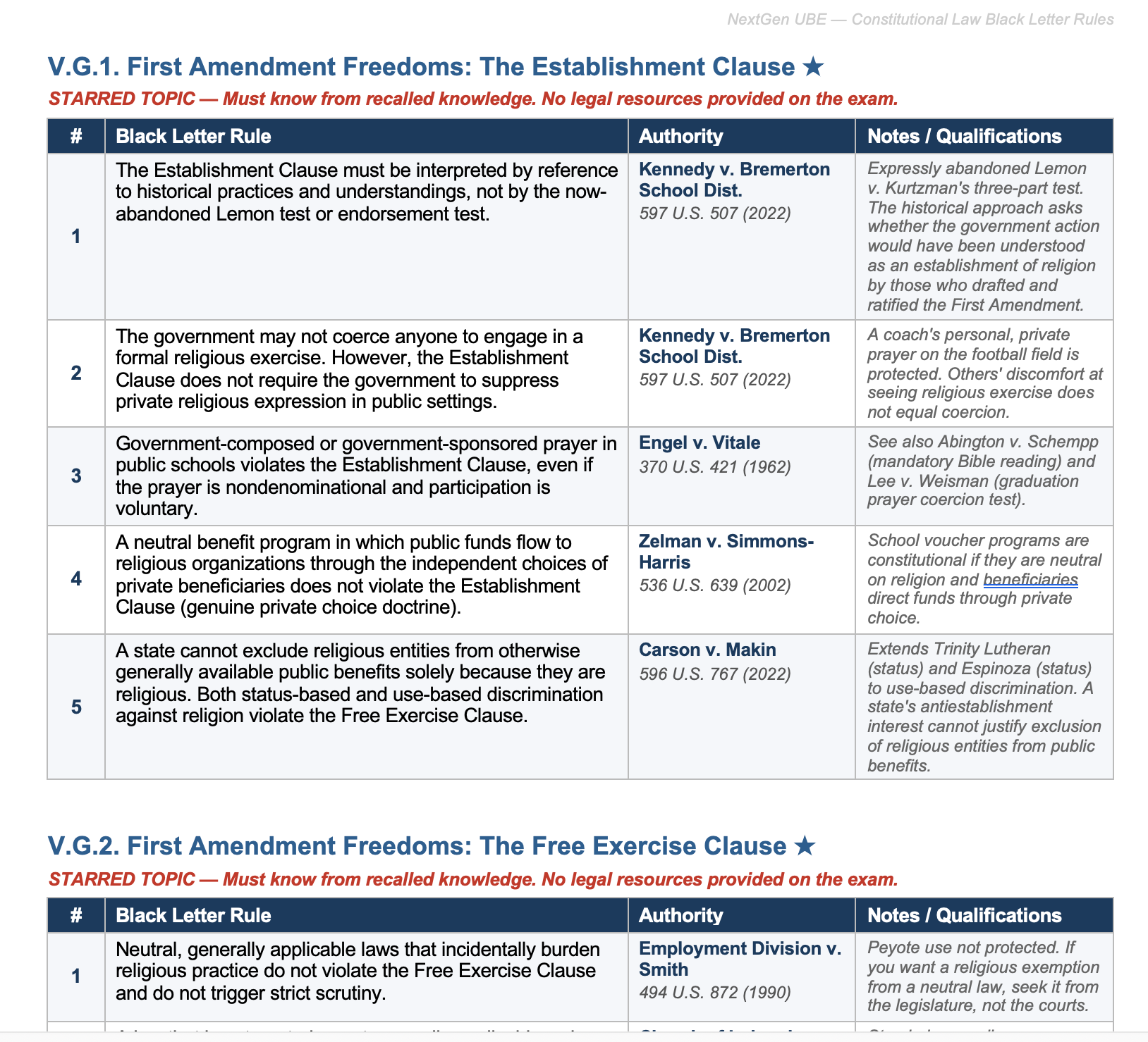 Now take the original scope document and the case reference document you put together and create a list of black letter rules a student would need to know to perform brilliantly on the NextGen bar in con law. Again, this will be a large project. Key each rule back to a case and a place in the scope document.