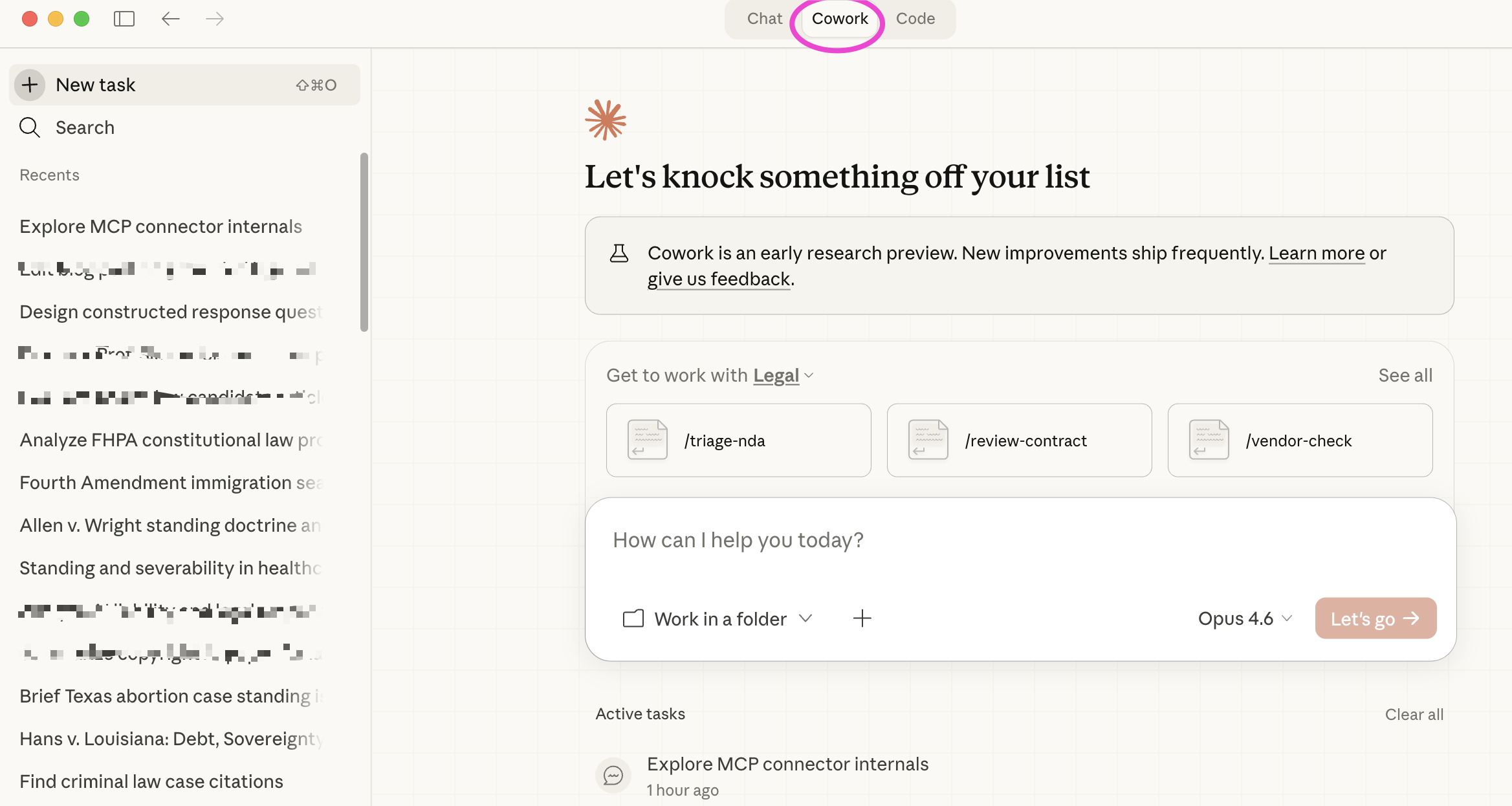 Footnote: In between the time I started writing this blog entry and the time I pressed submit, there is yet another entry into the GOAI4L arena: opencase.com. It provides a typical large language model front end to users and uses a sophisticated language model but grounds its answers in a legal database. What potentially converts it, however, from 2025 tech to a killer app, is the ability to access the database via an API call. That's not a far step from making an MCP client available. I have not yet really assessed, however, how well opencase operates and have not paid the as-yet-unspecified amount for API access. (Maybe they should let professors test it out for free?). Moreover, GitHub is already littered with open-source variants of Claude Cowork, some of which use inexpensive Chinese language models as their backend. (I am prohibited by Texas law from routing state work through certain foreign-controlled AI services, but students face no such restriction—and the cost savings are substantial.)