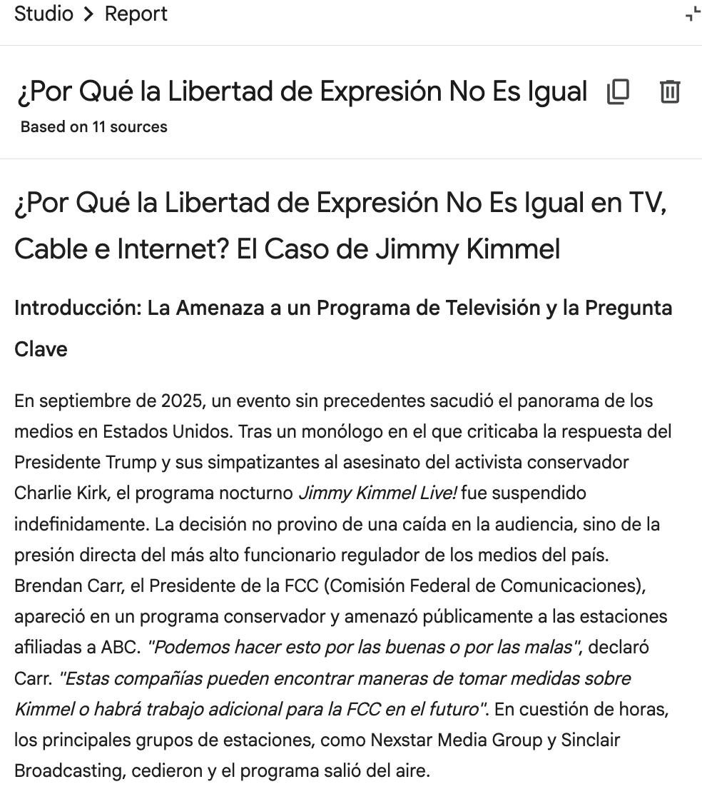 And I can customize the reports as I see fit. For example, imagine I want a report not in English but in Spanish (Mexican variant) and I want it to use the recent firing of Jimmy Kimmel as a hook.